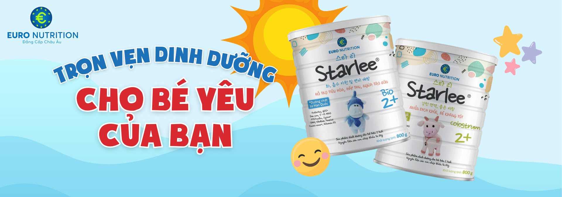 Mình được người quen giới thiệu sử dụng sản phẩm của Euro Nutrition. Con mình nhờ Starlee Bio 2+ mà chiều cao, cân nặng cứ lên đều đều. Mình đã từng đổi nhiều loại sữa khác nhau nhưng Starlee Bio 2+ là sản phẩm mà mình hài lòng nhất. Rất tin tưởng và chắc chắn sẽ sử dụng lâu dài cho bé.