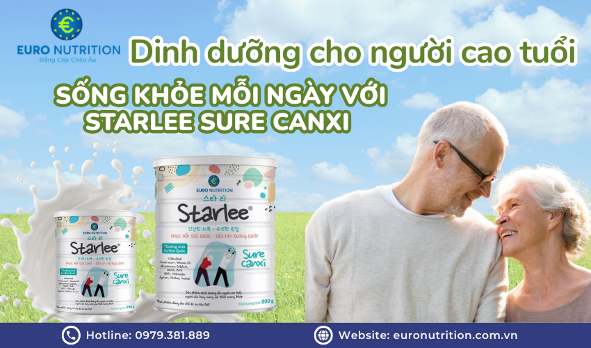 Người cao tuổi thường gặp rất nhiều vấn đề về sức khỏe đặc biệt tình trạng đau nhức xương khớp, mất cân bằng huyết áp, tim mạch hoạt động kém hiệu quả, mất ngủ và mắt mờ… Bổ sung dinh dưỡng cho người cao tuổi với sữa Starlee Sure Canxi là cách đơn giản nhưng rất hiệu quả chăm sóc sức khỏe toàn diện.